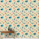 Mitte des Jahrhunderts Moderne Muster von Cocktails, Sternexplosionen und Diamanten in einer Palette von Creme, Türkis und Orange aus den 50er Jahren.