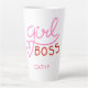 Moderne Girl Boss Fun Typografie Latte Tasse Revamp Ihr Arbeitsplatz mit einem trendigen typografischen Design mit den Worten "Girl Boss" in einem trendigen Skript, das in jeder lebendigen Farbe erhältlich ist, begleitet von charmanten Herzmotiven auf einem knackigen, weißen Hintergrund. Diese unterhaltsame Dekoration verleiht Ihrem Arbeitsbereich eine Touch von Persönlichkeit und Flair und macht ihn zu einem ansprechenden und motivierenden Umfeld für alle Ihre Bemühungen als selbstbewusste weibliche Führungskraft.