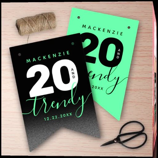 Mit diesem modernen Design, das auf einem schwarz bis rauchig grauen Hintergrund auffallend schwarz, weiß und minzgrün ist und handgeschriebenes Set bietet, feiern Sie die großen zwei oh im Stil. Design © W.H. Sim. Weitere Informationen unter zazzle.com/expressionsoccasions