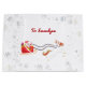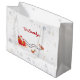Niedliche Weihnachtsgeschenktasche mit mädchenhaftem, hausgemachtem Weihnachtsgeschenk mit einer Illustration eines zauberhaften Einhornpferdes mit einem rot-goldenen Glitzer-Mane, der den Schlitten des Weihnachtsmanns zieht (voller Geschenke). Das Design beinhaltet silber-weiße Schneeflocken und Sterne für eine festliche Urlaubsstimmung.