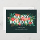 Mit diesen farbenfrohen, hübschen Postkarten können Sie diese Urlaubssaison beglücken. Sie sind mit verschiedenen Blumen- und Winterelementen (Kiefer, Blätter, Blume, Beeren, Knospen, Pinecone und Sprigs) in einem Farbschema aus Rot-Orange, Pfirsich, Korallen, Aqua, aquamarin, Grün, Braun und Kalkgrün gestaltet. Die moderne Typografie lautet "HAPPY HOLIDAYS" in Weiß. Die Hintergrundfarbe ist tief und immergrün, aber sie kann an jede Farbe angepasst werden, die Sie möchten! :) *Kunstwerke, die ausschließlich von Orabella Prints erstellt wurden - alle Rechte vorbehalten.