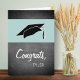 Moderne Glückwunsch Chalkboard Abschluss Card mit Graduate Name. Abschluss-Karte mit Graduierungsmütze, moderne weiße Typografie-Text-Glückwünsche und ein Name des Absolventen auf der Vorderseite - personalisieren Sie mit Ihrem Namen. Der Text ist auf einem modernen grauen Chalkboard-Hintergrund und die Kappe auf blau. Personalisieren Sie den Text in der Karte, um Ihre Bedürfnisse zu Anzug.