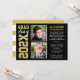 Mit dieser Ankündigung und Party Einladung eines Abschlusses mit mehreren Fotos kündigen Sie Ihren Schulabschluss stilvoll an. Die zweiseitige "Now and Then"-Karte zeigt zwei Fotos des Abschlusses (ein aktuelles und älteres ab ihrem ersten Schultag) mit einem einfachen und männlichen Design mit sportlich-jersey inspiriert Schrift. Die Farben Schwarz, Gold und Weiß können an die Schulfarben angepasst werden. Ein Muster aus weißen Streifen zieht sich an der Rückseite der Karte an. *Foto Tipp: Zuschneiden Sie Ihre Fotos vor dem Hochladen auf eine quadratische Form.