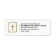 Elegantes Gold-Cross-Return-Adressetikett mit Gold und schwarzen Boxen. Ideal für Taufen, Kommunionen und Christliche Korrespondenz.