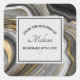 Küchenaufkleber mit abstraktem Design mit einem agaten Geodenmineralmuster. Gold, grau, weiß und schwarz wirbeln zusammen und bilden elegante Farbwellen, ein hellgraues Quadrat mit einem dünnen schwarzen Rand, der mit dem Text im Inneren überlagert wird. Ideal, um einen Hauch von Klasse und Eleganz zu vermitteln.
