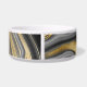 Eine Schüssel mit abstraktem Design mit einem agaten Geodenmineralmuster. Gold, Grau, Weiß und Schwarz setzen sich zusammen und bilden elegante Farbwellen. Ein hellgraues Rechteck, das oben mit dem Text im Inneren platziert ist. Stilvolle moderne Eleganz.