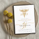 Feiern Sie Ihre Errungenschaft stilvoll mit dieser modernen Ärztin MD, Graduierungsparty Einladung, mit einem schlanken Design mit einem goldenen Caduceus und eleganten goldenen Schrift-Kalligraphie-Initialen Monogramm. Das gepflegte Design verleiht dem Hotel eine Touch von Eleganz. Gold und schwarz. Erhältlich in Print, als digitaler Download, oder beides.