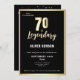 Moderne Gold Metallic Überraschung 70. Geburtstag Einladung. Feiern Sie mit unserem eleganten Black & Gold 70. Geburtstag einen Meilenstein im Stil. Dieses edle, schwarze Imitat mit luxuriösen Goldfolien verleiht jedem Anlass eine Touch Klasse. Diese Einladung ist perfekt, um den Ehrengast ein besonderes Gefühl zu geben. Mit diesem zeitlosen und schicken Design machen Sie 70 unvergesslich!