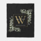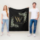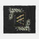 Moderne Gold Monogram Greenery Floral Black Fleecedecke