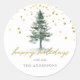 Maßgeschneiderte Weihnachtsaufkleber und -etiketten mit "Happy Holidays", modernen Handschriften mit schneebedecktem Weihnachtsbaum und goldenen Glitzer.