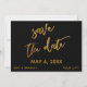 Diese kühn und einfach gehaltene Suite zeichnet sich durch den modernen, lässigen handgeschriebenen Schriftart aus, der für Akzente verwendet wird, und durch das lockere Wellenmuster, das über dem Hintergrund angebracht ist. Die Wellen sind dazu gedacht, feierliche Bänder zu erwecken. In diesem Stück wurde der Schriftart für die Handschrift benutzt, um eine Grafik zu erstellen, die die Worte "Save the Date" abbildet. Sowohl dieser Kopftext als auch das Hintergrundmuster wurden mit einem Imitat-Goldfolienmuster versehen. Verwenden Sie die Vorlagenfelder, um Ihre persönlichen Daten hinzuzufügen und dieses festliche Design zu Ihrem eigenen zu machen. Der schwarze Hintergrund kann in eine beliebige Farbe geändert werden. Bitte kontaktieren Sie uns für spezielle Anfragen oder für individuelle Betreuung. // 100 //