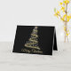 Moderne Schwarz-Gold Weihnachtskarte mit elegantem goldenen Weihnachtsbaum mit schwarzem Hintergrund und goldenem Text.
