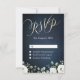 Moderne goldene Hochzeit mit blauen Blumen RSVP Karte