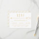 Eine elegante Hochzeitskarte mit einer Goldlinie mit zwei überlappenden Halbkreisen auf der rechten Seite und einem Punkt auf dem links, auf einem weißen Hintergrund positionierten Punkt. Die Rückseite zeigt ein diagonales Muster der Namen des Paares in Gold auf Weiß, wodurch eine raffinierte Touch der Gnade hinzugefügt wird. Bitte beachten Sie, dass, wenn Ihre Namen auf der Rückseite mehr oder weniger Platz benötigen, diese so anpassen, dass sie die Textgröße entsprechend vergrößern oder verkleinern.