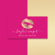 Dieses elegante Make-up-Künstler Visitenkarte Design bietet Imitate goldenen Lippen, heiß rosa Hintergrund und eleganten kalligraphischen Schriftart.