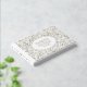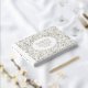 Moderne Goldfolie-Blätter und Rahmen Hochzeitsgast-Buch. Dieses Design zeichnet sich durch ein hübsches Muster von Blätter aus, und Ihre Formulierung in Goldfolie in einem weißen Rahmen mit goldener Kontur. Auf der Rückseite befinden sich die gleichen goldenen Blätter.