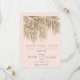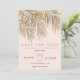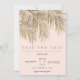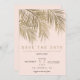 Moderne, einfache Imitate mit goldfarbenem Palmenrosa mit schlichter Typografie, ein trendiges und Save the Date tropisches Hochzeitstil auf Palmenblättern.