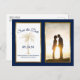 Frag deinen Gästen, ihr Hochzeitsdatum mit diesem schlicht eleganten Design retten, das ihr Foto, die moderne Schrift, den marineblau gehaltenen Text und eine goldfarbene, in metallischem Gold gerahmte Palme auf marinebasischem Hintergrund umfasst. Passen Sie es mit Ihrem Foto, Hochzeitstag, Namen und Ort auf der Vorderseite zusammen mit Ihrer Nachricht, Namen und Rücksendeadresse auf der Rückseite an.