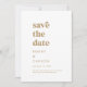 Diese moderne Goldtypografie ist Save the Date perfekt für eine einfache Hochzeit. Das minimalistische Design in Gold und Weiß besticht durch einen Retro-zeitgenössischen Schriftart mit einem einzigartigen rustikalen böhmischen Ambiente. Ideal für jede Jahreszeit. Behalt es minimal, wie es ist, oder fügen Sie Ihre eigenen Grafiken und Kunstwerke.