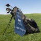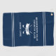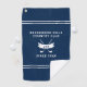 Aktualisieren Sie Ihre Spieltags-Accessoires mit diesem eleganten personalisierten schwarzen Golfhandtuch mit monogrammierten Initialen und einem modernen gekreuzten-Schläger-Emblem. Dieses individuell anpassbare Golfhandtuch ist für Golfer konzipiert, die zeitlosen Stil und praktische Funktion schätzen, und ist eine auffällige Ergänzung für jede Golftasche. Der dunkelblaue Hintergrund, akzentuiert durch saubere weiße Trennstreifen, schafft ein anspruchsvolles Layout, das Ihren individuellen Text hervorhebt. Personalisieren Sie die Mitte mit dem Namen Ihres Golfclubs, einem Lieblingsgolfzitat oder einer Nachricht, die Ihre Identität auf dem Grün widerspiegelt. Darunter werden klassische weiße gekreuzte Golfschläger von einem gebogenen Band umrahmt, das Ihre individuellen Monogramminitialen zeigt und eine elegante, persönliche Note hinzufügt. Eine letzte Zeile unter dem Design ermöglicht es Ihnen, das Gründungsjahr oder ein anderes bedeutungsvolles Detail anzuzeigen, wodurch dieses Handtuch zu einem unvergesslichen Erinnerungsstück wird. Ideal als Geschenk zum Vatertag, für Golfturniere, Geburtstage