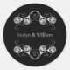 Moderne gotische Rose Wirbel Schwarz-Weiß-Hochzeit Runder Aufkleber