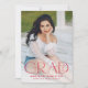Mit dieser Ankündigung des modernen Abschlusses kündigen Sie den Abschluss Ihres Absolventen der Oberschule oder Uni an. Die Ankündigung des Abschlusses zeigt "Grad" in trendigem rotem Schriftzeichen mit dem Abschluss Jahr in der Buchstaben 'd'. Personalisieren Sie die Vorderseite der Ankündigung mit dem vertikalen Senior Foto, dem Namen und der Schule des Absolventen. Die Ankündigung kehrt zurück, um ein zusätzliches Foto in einem weißen Quadrat-Rahmen mit der unten angezeigten Meldung zu zeigen.