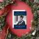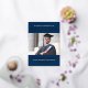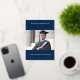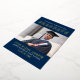 Mit dieser beeindruckenden Visitenkarte und Party Einladung für echtes Abschluss 2 Foto kündigen Sie Ihren Schulabgänger stilvoll an. Goldfolie und marineblaue blaue Karte mit einem modernen und männlichen Typografie-Design mit zwei Porträts Ihres ansehnlichen Abschlusses. Die Rückseite der Karten beinhalten eine Einladung an eine Graduiertenparty, um den Anlass zu feiern.