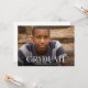 Diese zeitgenössische Abschluss-Ankündigung besticht durch moderne Typografie und ein komplettes Foto. Auf der Vorderseite der Karte wird "Graduate" in trendigen Imitaten mit silbernen Hauptstädte auf der Unterseite geschrieben. Der Name des Absolventen ist unten, und das Jahr des Abschlusses wird in der D in "Absolvent" positioniert. Das Typografie-Design überlagert ein vollbleichtes horizontales Foto des neuen Abschlusses. Details zu den Graduierungspartnern können auf der Rückseite der Karte hinzugefügt werden.