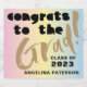 Feiern Sie Abschluss mit fett formatierter Etikettenvorlage. Dieses Design zeichnet sich durch 2 kontrastreiche Schriftart in Schwarz und Gold auf einem weichen Pastellgradienten aus. Passen Sie mit dem Jahr des Abschlusses und dem Namen der Schüler an. Bitte sehen Sie sich weitere Artikel in dieser fabelhaften Sammlung an.