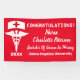 Modernes Banner der Red and White Nurse Graduation Party mit rotem Hintergrund, stylischer Textvorlage in Weiß, Pflege-Kappe und weißem Kadukus-Symbol. Das Material des Banners ist innen, wenn Sie das Banner für den Außenbereich gewollt haben, dann das Material in den Außenbereich ändern.Klicken Sie auf den Personalier-Button, um es in Ihrem eigenen Text anzupassen