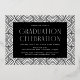 Einfache Graduiertenfeier mit dem horizontalen Foto des Absolventen mit "Graduate" in Goldfolie moderne Kunst Deko Schrift dargestellt. Personalisieren Sie die Front der Gold-Folie Graduation Party Einladung durch Hinzufügen des Graduiertennamens, Schule und Grade Jahr. Die Einladung kehrt sich um, um Ihre Graduierungsparty Details mit einem schwarz-weißen geometrischen wirbelnden Hintergrund anzuzeigen.
