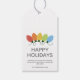 Einfache Weihnachts-Weihnachtsgeschenk-Tag mit einer Reihe von farbenfrohen Urlaubslichtern. Minimalistische Typografie. Sauberes einfaches Design. Alle Textbereiche sind personalisierbar. Kontaktieren Sie uns für Hilfe bei der Personalisierung oder Anpassung an Ihre individuellen Wünsche. Gute Ferien!