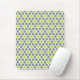 Dieses Mauspad weist ein geometrisches Hexagon-Muster in drei Farben auf: weiß, grau und kalk-grün.