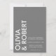 Eine einfache, moderne Hochzeitseinladung mit kühnen Typografiennamen, grauer Farbe und minimalistischem Design.