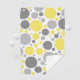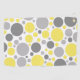 Das moderne Muster zeigt große und kleine gelbe Blasen und graue Farbtöne auf weißem Hintergrund