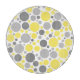 Das moderne Muster zeigt große und kleine gelbe Blasen und graue Farbtöne auf weißem Hintergrund