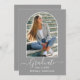 Modern Arch Foto Frame - Trendy Calligraphy Script - Foto Graduation Party Invitation Card - Grau Background