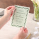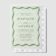 Die Hochzeitseinladung "Modern Green Wavy Frame Vellum", bei der Boho Charme und Retro-Eleganz in perfekter Verbindung von Stil und Eleganz aufeinander treffen. Dieses skurrile Design mit grünen Schriften, die anmutig über einen hellgrünen, schieren Vellum-Hintergrund tanzen, ist gerahmt mit einem Vintag inspirierten Wellenrand. Diese Einladung ist ideal für Paare, die ein modernes und nostalgisches Ambiente suchen. Sie können Ihre Namen und Ihre Hochzeitsdetails personalisieren und so eine einzigartige und unvergessliche Ankündigung für Ihren besonderen Tag schaffen. Set den Ton für Ihre Feier mit dieser bezaubernden Vellum Hochzeitseinladung, um das Wesen der Liebe und zeitlosen Schönheit zu erfassen.