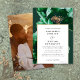Diese elegante smaragdgrüne und goldblühende Hochzeitseinladung kann mit Ihren Informationen in der modernen Typografie und einem besonderen Foto auf der Rückseite personalisiert werden. Entwickelt von Thisisnotme©