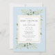 Mit zarten Aquarellfarben-Blätter auf sanftem, blauen Hintergrund, kann diese schicke Babydusche, Sprinkle oder Paare-Duscheinladung mit einer speziellen Babydusche personalisiert werden, mit einem silbernen Hintergrund auf der Rückseite. Entwickelt von Thisisnotme©