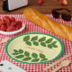 Moderne grüne Blätter auf gelbem Hintergrund Papier Party Plate. Happy Time Text kann personalisiert sein.