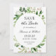 Moderne grüne Blätter mit elegantem, einfachem Hochzeitstil speichern die Datumskarte.
