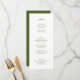 Modernes, grünes Botanisches Blumenmenü mit Vorspeise, modernem botanischem zeichn und dem Namen des Ehepaares und dem Hochzeitsdatum auf der Rückseite. Ideal für einen Hochzeitsempfang, ein Hochzeitsessen, ein Probe-Dinner oder eine Pärchendusche. Alle Farben können nach Belieben geändert werden. Diese Hochzeitskarte ist Teil einer kompletten Hochzeitsbriefpapier-Suite mit passenden Gegenständen.