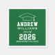 Die modernen Servietten der Graduiertengruppe verfügen über eine Gradmütze mit schlichter und moderner weißer Typografie, die mit dem Namen und der Schule des Absolventen personalisiert werden kann. Der grüne Hintergrund kann an jedes Schulthema oder Party angepasst werden.
