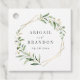 Rustikales botanisches Blattgrün Design und Imitate goldene Folie Blätter und geometrische Rahmen, mit den Namen der Paare und Hochzeitstag, und danke Ihnen Informationen auf der Rückseite, einfach und elegant, ideal für Sommer rustikale Hochzeit, Frühjahr botanischen Garten Hochzeit. Alle passenden Teile in der Sammlung anzeigen