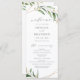 Rustikales botanisches Blattgrün-Design mit Imitaten goldenen Blätter und geometrischem Rahmen, mit trendiger Schrift, einfach und elegant, großartiges Hochzeitsprogramm für den grünen und goldenen Sommer rustikale Hochzeit, Frühjahr botanischen Garten Hochzeit.