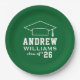 Die Teller für abgerundete Abschlüsse sind grün-weiß gestaltet (können über "Customize It!" geändert werden) und verfügen über eine Graduierungskappe und einen benutzerdefinierten Text für den Namen und das Klassenjahr des Absolventen.