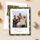Moderne grüne karierte Weihnachtskollage mit klassischem und rustikalem Design. Die Vorderseite ist mit einem Single-Foto mit einer zeitlosen grünen karierten Tartangrenze, Platz für Ihren Namen und das Jahr, während die Rückseite beinhaltet drei Fotos und Raum für Ihre Urlaubsbotschaft.