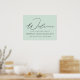 Elegantes Abschluss-Zeichen mit "Welcome" in einem modernen, schwarzen Kalligrafieschrift mit einem minzgrünen Hintergrund (oder einer beliebigen Farbe). Personalisieren Sie das moderne Abschluss-Poster, indem Sie den Namen, den Namen der Schule und das Abschluss Jahr. Das Minzgrün-Abschluss-Schild eignet sich sowohl für Absolventen der Highschool als auch für Absolventen der Uni.