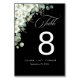 Fügen Sie Ihrem Empfang eine Touch von natürlicher Eleganz mit unserer modernen Smaragdgrünen Hochzeitskampagne hinzu. Die atemberaubende Aquarellgestaltung von Eukalyptus-Blätter und zarten Jasmin-Blume ergänzt diese Tischnummer perfekt zu einem Hochzeitsthema in Grün oder Aquarellen. Stilvoll und leicht lesbar, ermöglicht es den Gästen, sich auf den Sitzplätzen zu vergnügen und gleichzeitig mit einer raffinierten botanischen Touch den Tisch zu stärken.